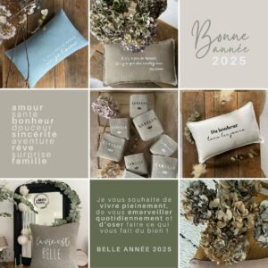Apportez style et chaleur à votre intérieur avec nos créations textiles : coussins, paniers, guirlandes, fanions et affiches en lin.