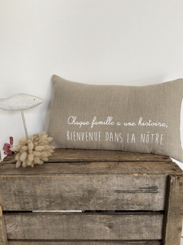 Coussin « Chaque famille a une histoire, bienvenue dans la nôtre… »